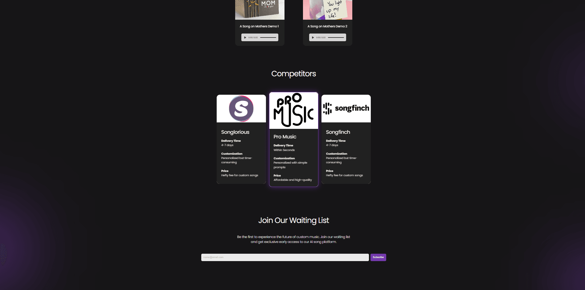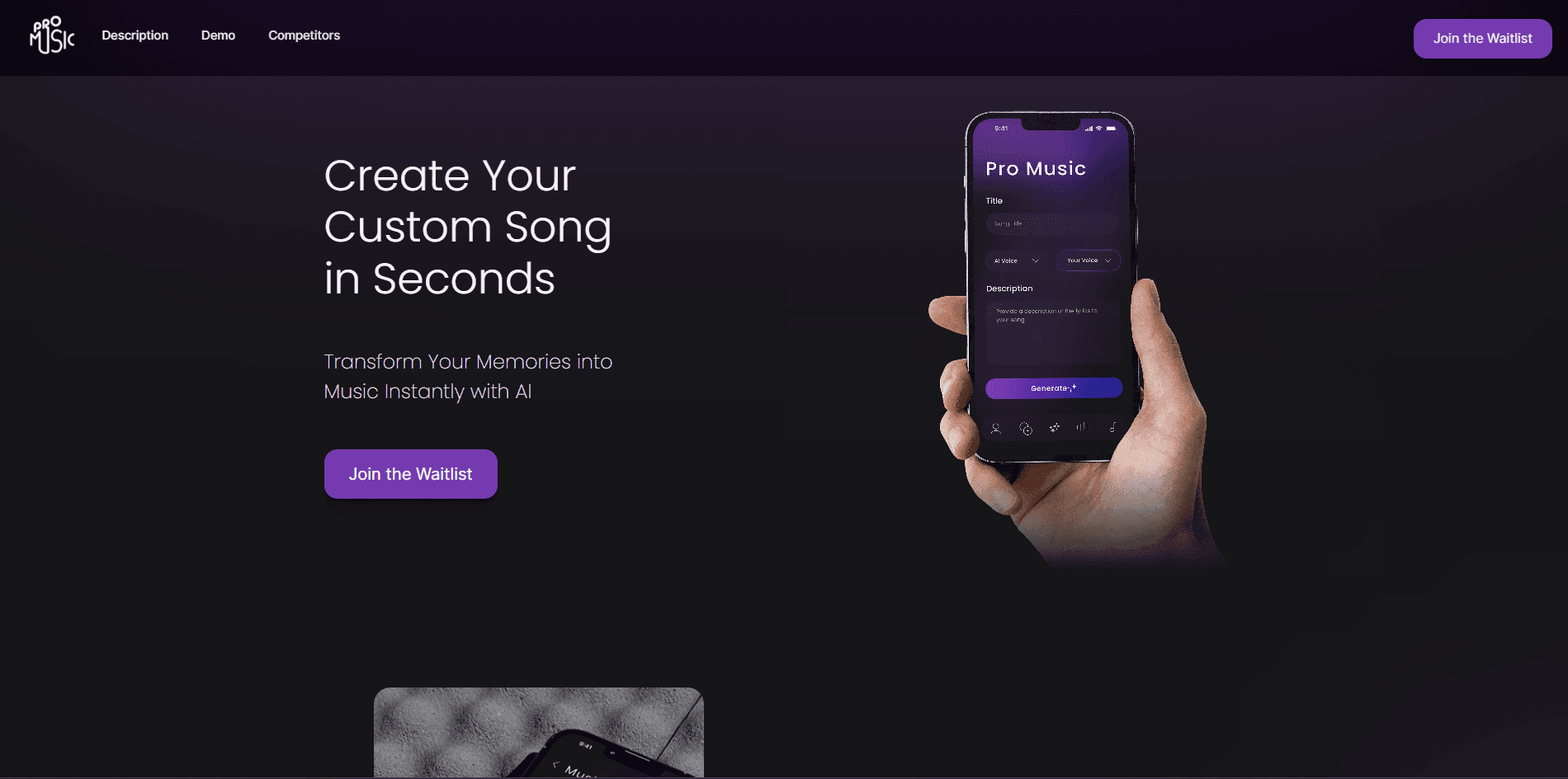 An accompanying landing page was also developed: https://promusic.ai/