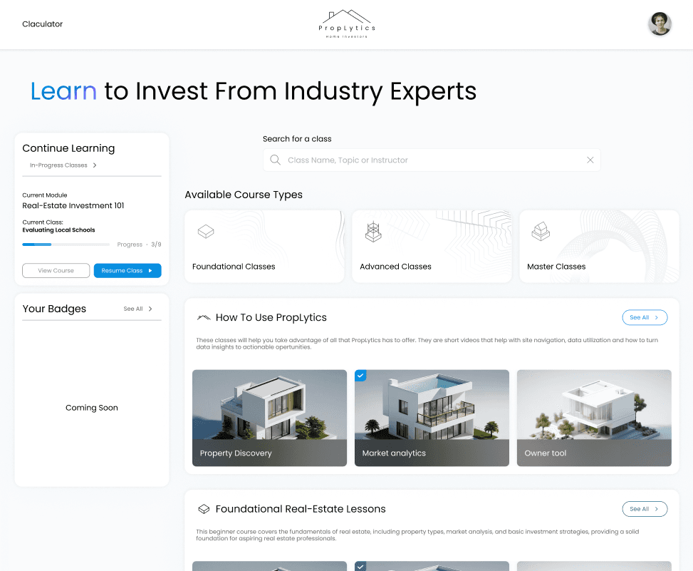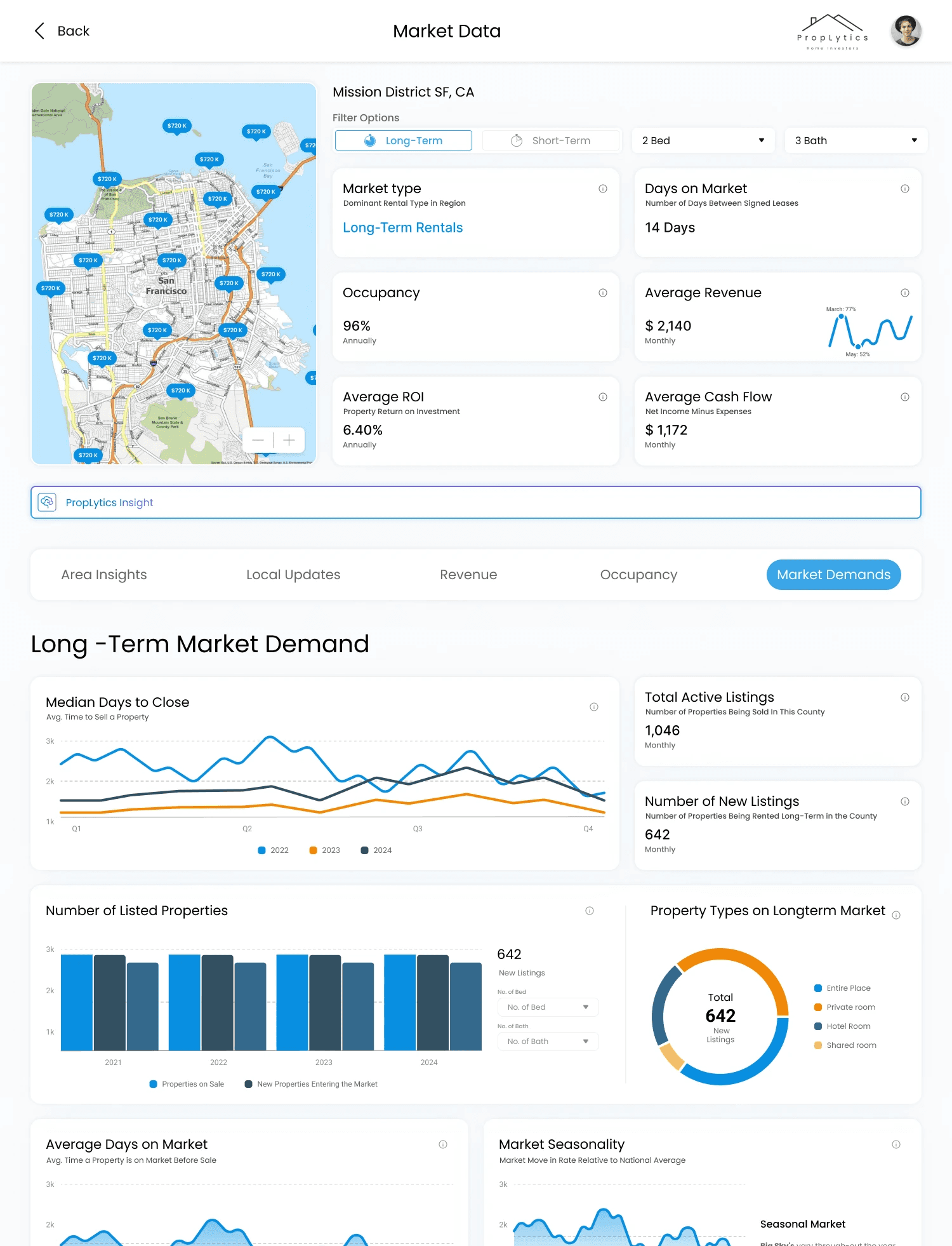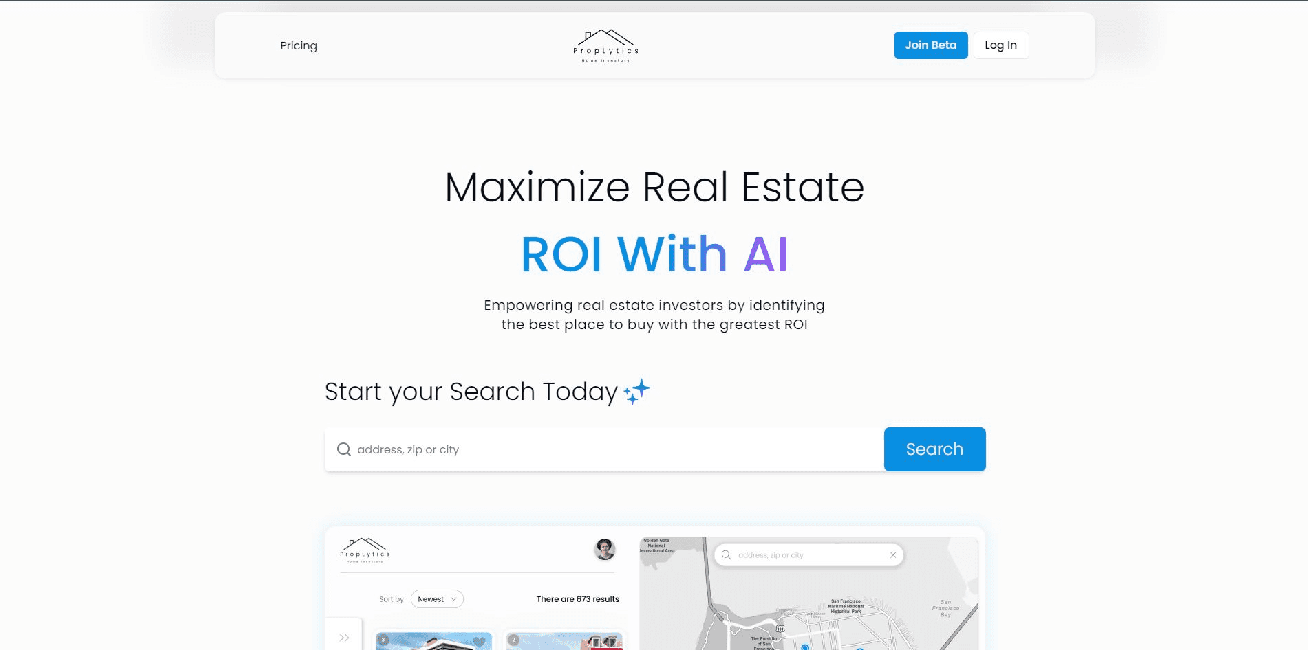 PropLytics is a real estate investment tool that gathers and generates data from many sources allowing investors to make informed decisions when buy properties. This webapp focuses on ROI opportunities but also provides insights on local information, market developments and property value forecasting. The Webapp also has other supporting features like a property management tool providing insights on what is happening in and around users investments. It also offers an educational platform for new investors to learn how to enter the real estate market.